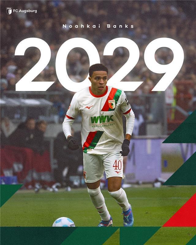 官方:奥格斯堡与18岁青训中卫班克斯续约至2029年