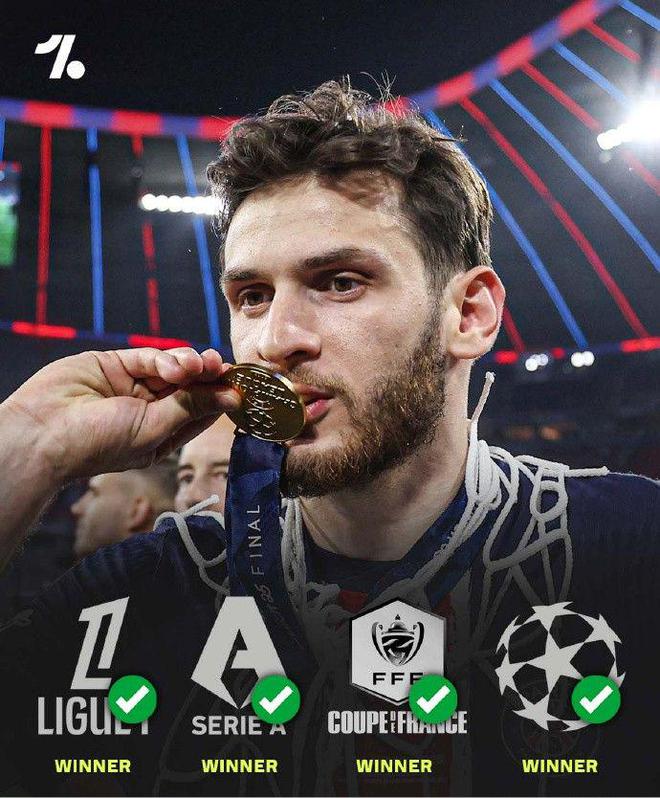 KK成人生赢家!单赛季斩获法甲+法国杯+欧冠+意甲