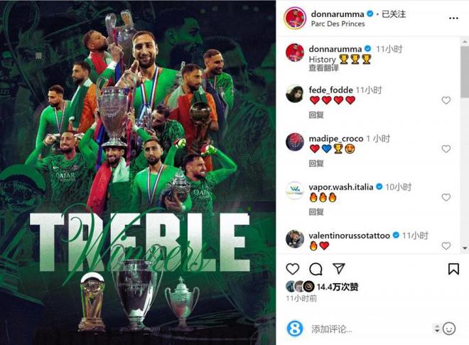 荣耀!多纳鲁马社媒晒三冠王海报:历史