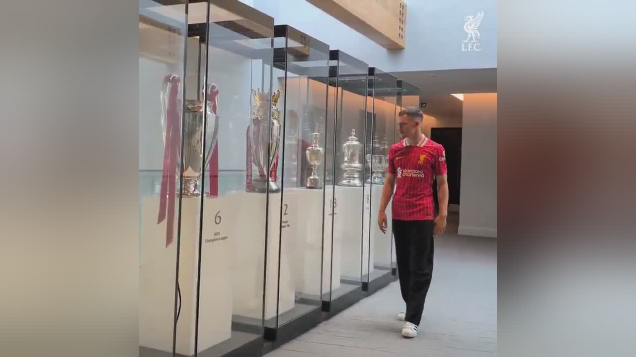 从没见过这么多杯子利物浦官方晒维尔茨参观荣誉陈列室视频